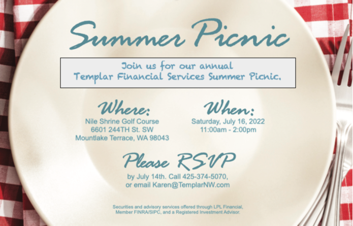 Your family is invited to Templar Financial's Summer Picnic! Bring the kids and enjoy some fun in the sun with us!